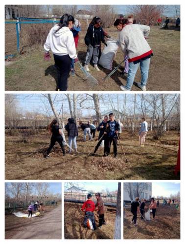 Антон Павлович Чехов: «Таза тазаланатын жерде емес, қоқыс тастамайтын жерде» деген екен. Адамдар қаншалықты таза болса да, аумақты келген қоқыстан, құлаған жапырақтардан, қардан және т.б. күнделікті тазалау қажет.Әдетте бір тазалаушы бұл тапсырманы жеңе алмайды, сондықтан оған көмектесу үшін 2023 жылғы 13 сәуірде мектеп ұжымы оқушылармен бірге мектеп айналасын тазалауға шықты. Өйткені, тазалық - бұл жайлылық пен жайлылық ғана емес, сонымен қатар мәртебенің көрсеткіші. Мақсаты: көшелердің, іргелес аумақтардың және көлдердің ластану мәселесіне балалар мен ересектердің назарын жаңарту, экологиялық мәдениетті және қоқыс көшелер мен аулаларға емес, полигонға тиесілі деген берік сенімді қалыптастыруға ықпал ету.
